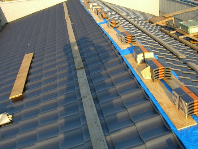 鹿児島では台風や地震で瓦が飛んだり崩れたりすることも多くあります。昔の施工ではこういう自然災害に対する認識が低かったというのも事実ですが、現在では瓦を一枚一枚ステンレスビスで固定。地震や台風で崩れることの多かった屋根瓦を金物、木材の使用や瓦の全緊結によりしっかりとした強度を実現しています。